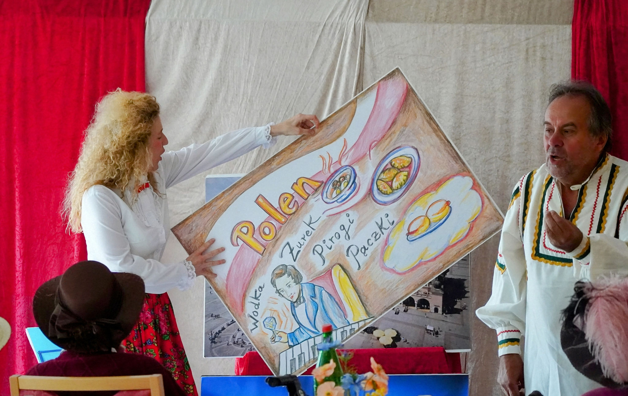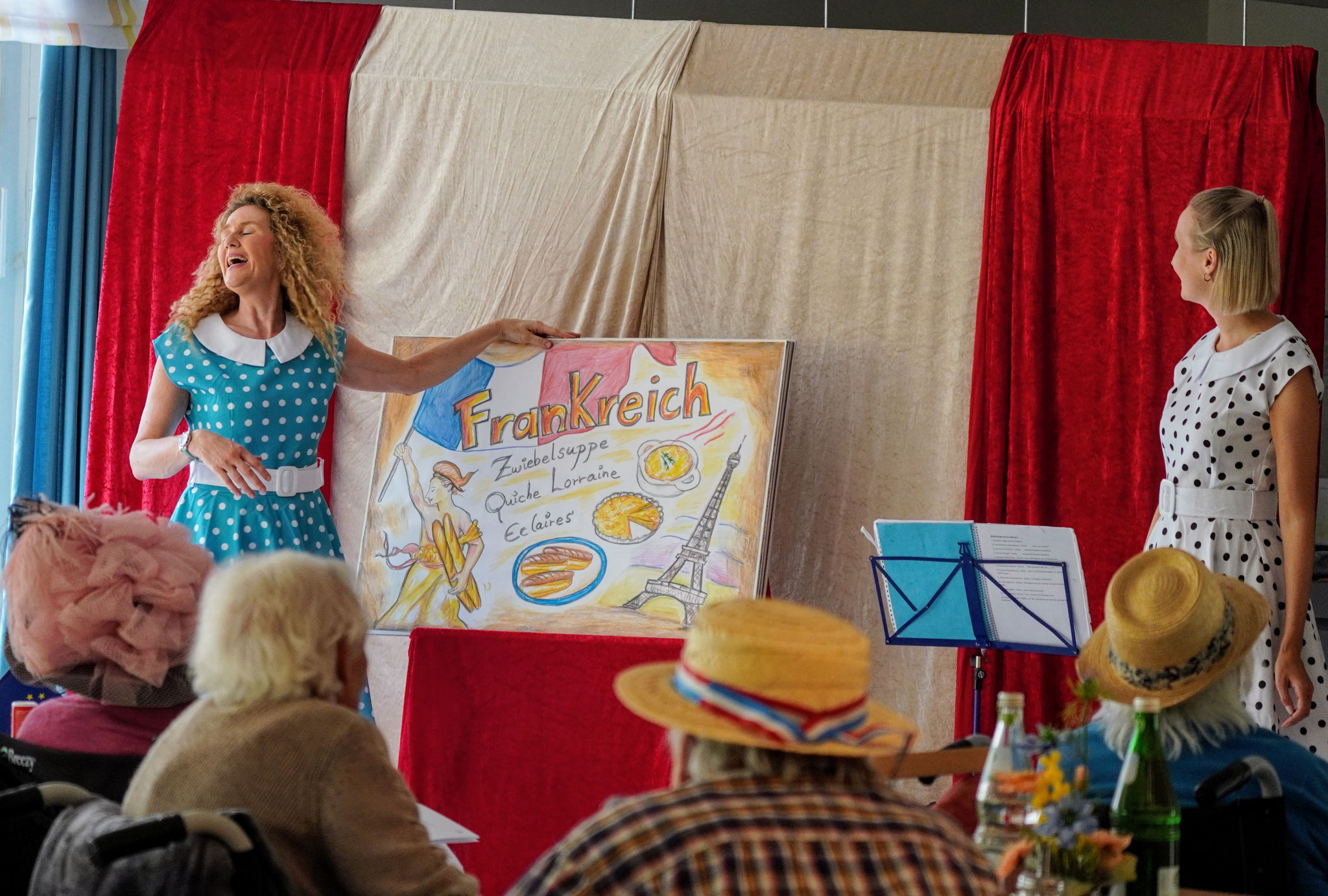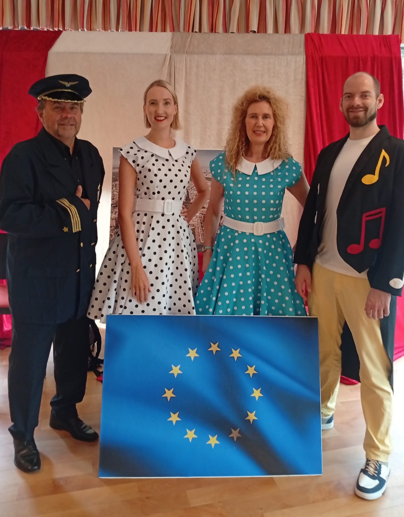 Alle Teilnehmenden reisen als Reisegruppe musikalisch, mit kleinen Choreographien und kurzen Texten in 75 Minuten durch Frankreich, Polen, Österreich und Italien. Reiseerinnerungen werden dabei gern in das Programm mit aufgenommen. Die musikalische Bandbreite reicht von Offenbachs Can-Can über das Weiße Rössl, Frederick Chopin und Schlager der 50er und 60er Jahre bis zum heutigen Rap. Die Teilnahme an den Workshops und die Aufführung, welche auch unabhängig von den Workshops besucht werden kann, sind kostenfrei, jede*r ist herzlich willkommen, es sind keinerlei Vorkenntnisse erforderlich. Info und Anmeldung unter 0179-1009551
