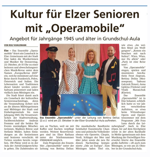 Die Stadt Elze lädt Bürger*innen ein zu einer Veranstaltung mit dem Ensemble Operamobile